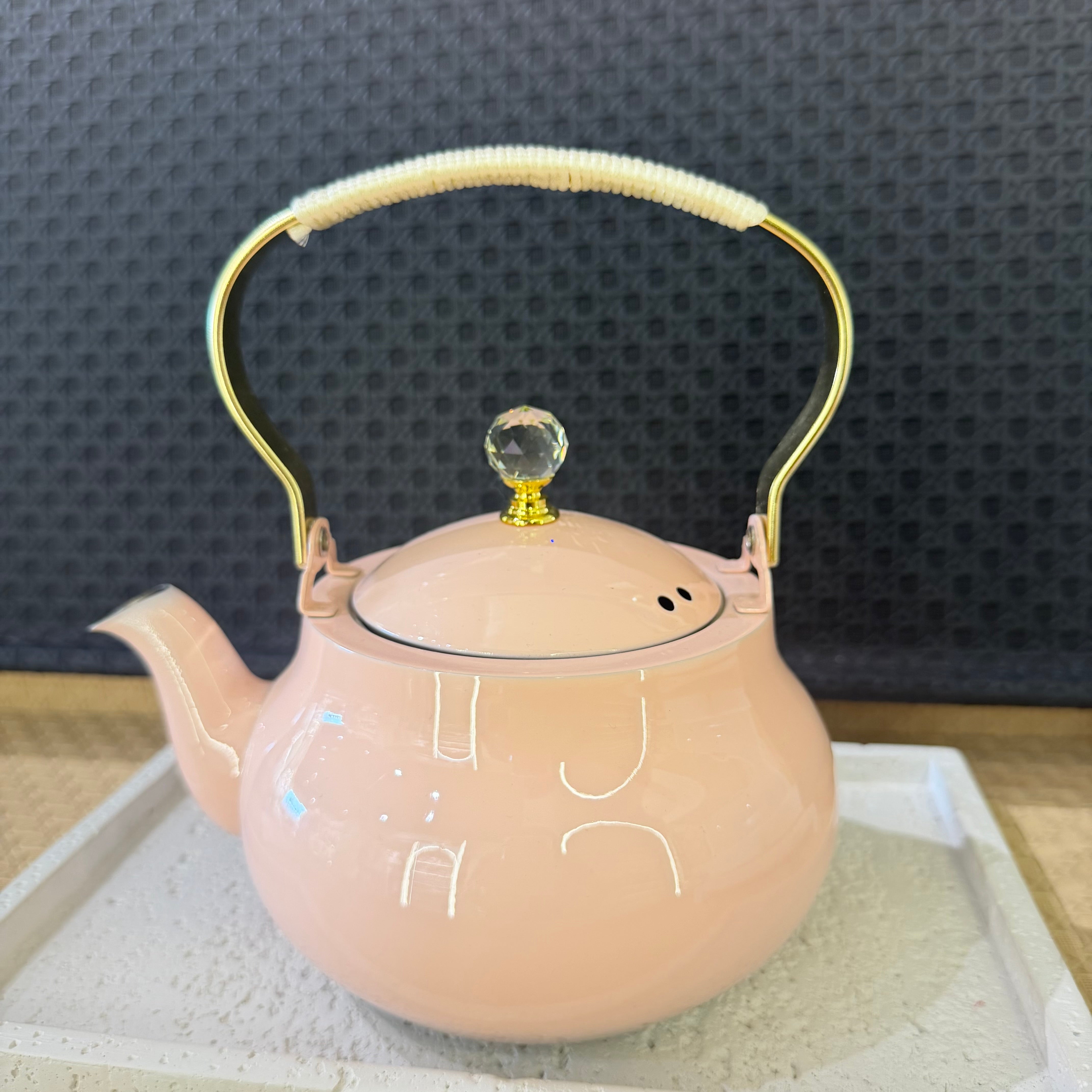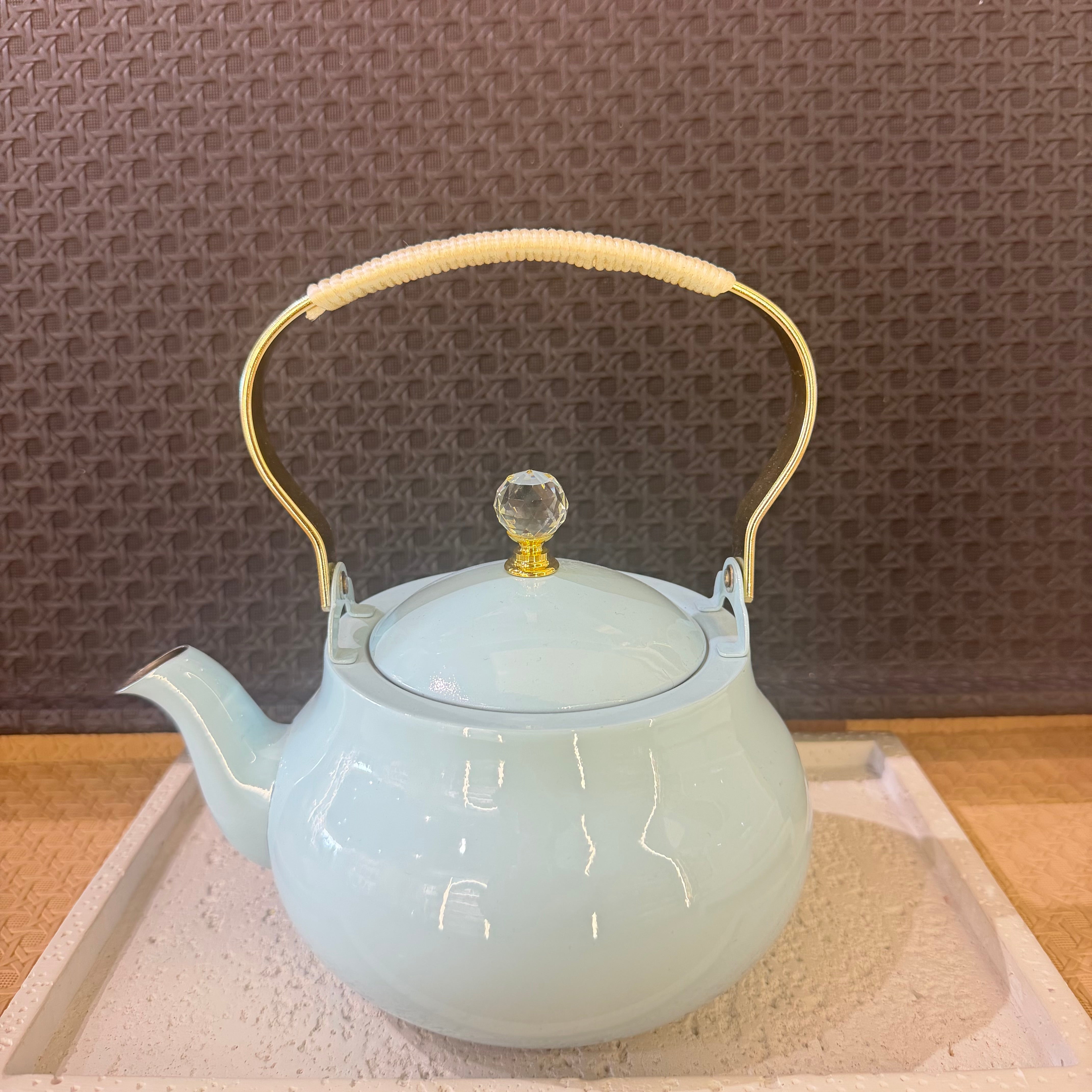 This 1.5 liter pastel color metal teapot is perfect for your gathering or BBQ needs. Its durable design and oven safe capabilities make it a versatile addition to your kitchen. Enjoy a touch of elegance while safely and conveniently brewing your favorite hot beverages.