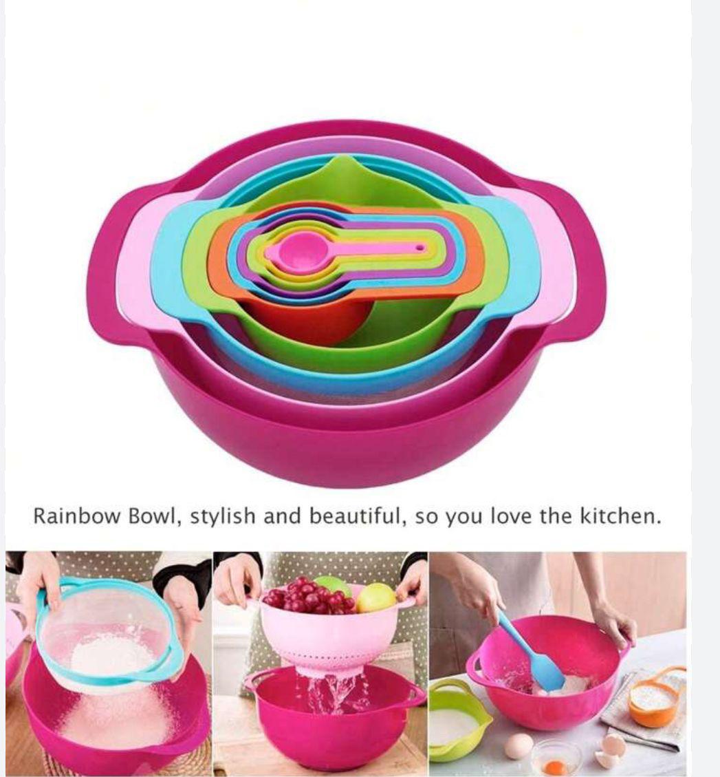 جدّد مطبخك مع طقم أوعية الخلط البلاستيكية هذا المكون من 10 قطع، والمزين بنقوش فواكه رائعة. لا تضفي هذه الأوعية متعددة الاستخدامات لمسة جمالية على مطبخك فحسب، بل تأتي أيضًا مع كوب قياس وملاعق لتسهيل عملية الخبز. إنها إضافة لا غنى عنها لأي طاهٍ منزلي.