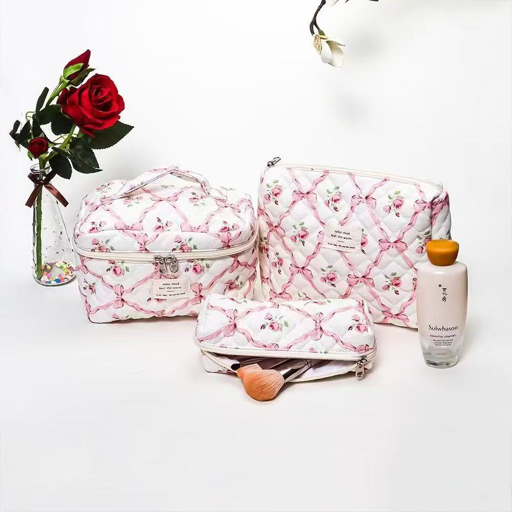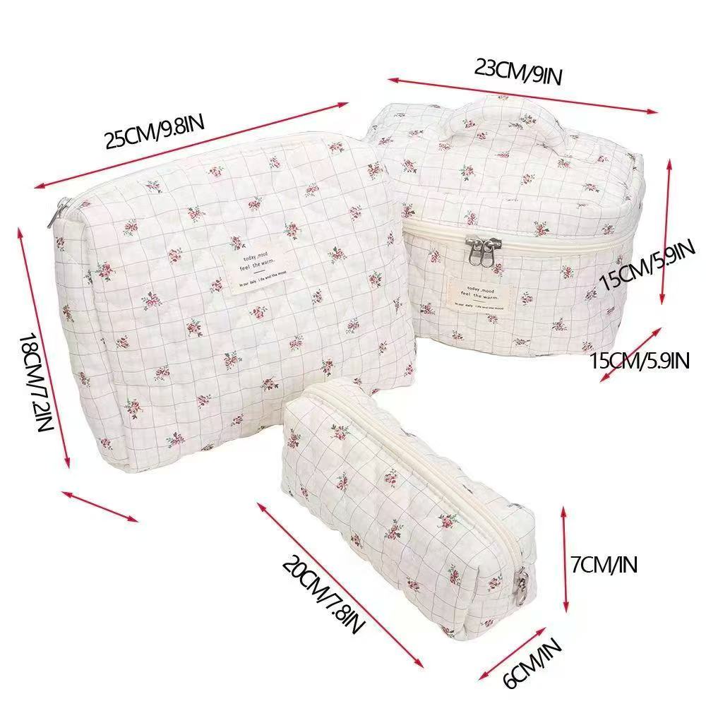 مجموعة من 3 حقائب مكياج مبطنة من القطن