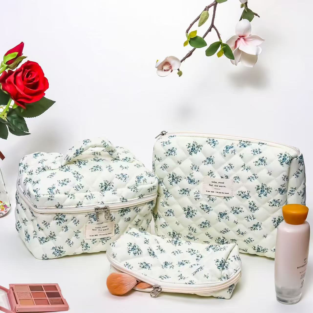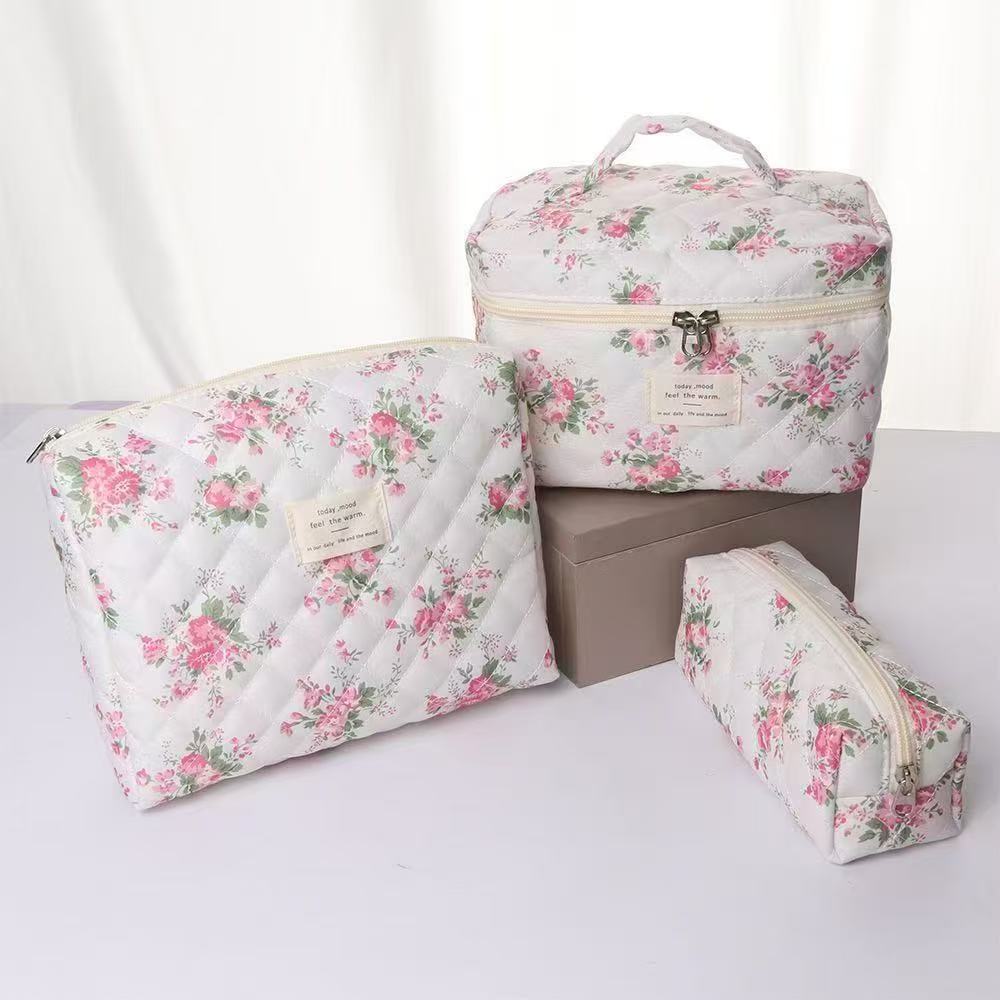 نظّمي مستلزمات مكياجكِ الأساسية مع مجموعتنا المبطنة من ثلاث حقائب قطنية. صُممت هذه الحقائب بسحاب إغلاق لتخزين آمن، وهي مثالية لإضفاء لمسة جمالية أثناء التنقل. يضفي التصميم الزهري لمسة أنثوية على إكسسوارات سفركِ. حافظي على أناقتكِ وترتيبكِ مع مجموعتنا متعددة الاستخدامات من حقائب المكياج.