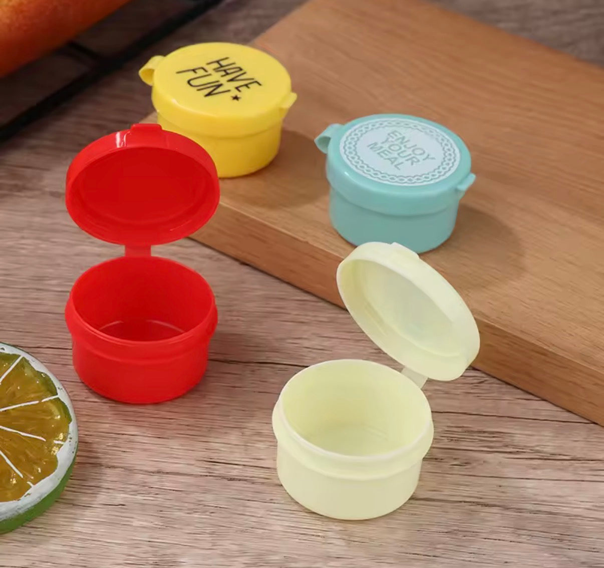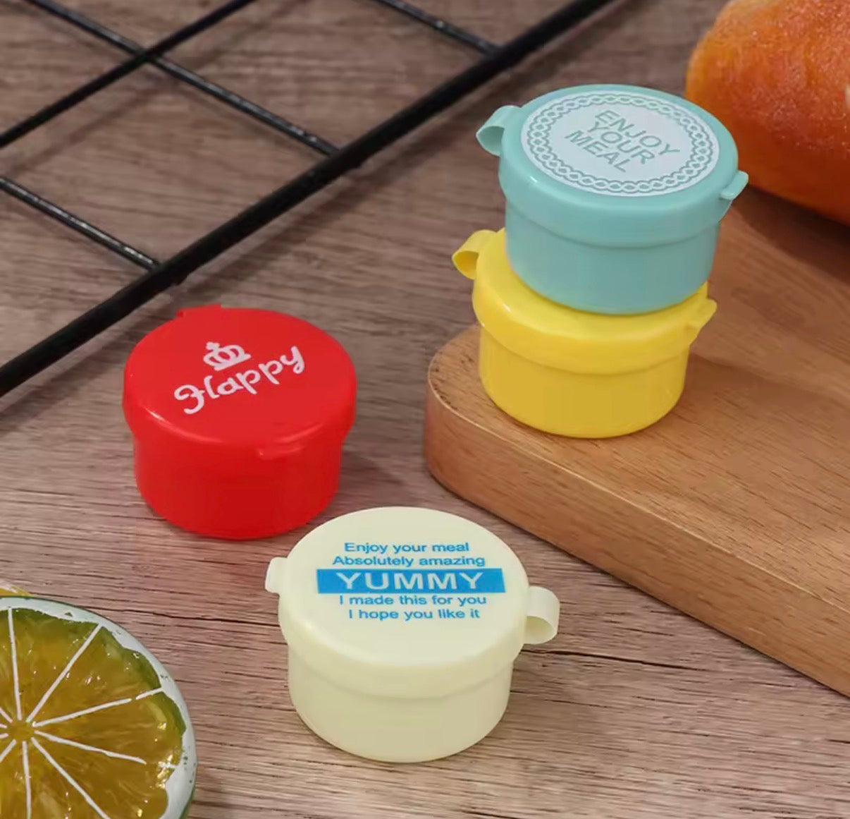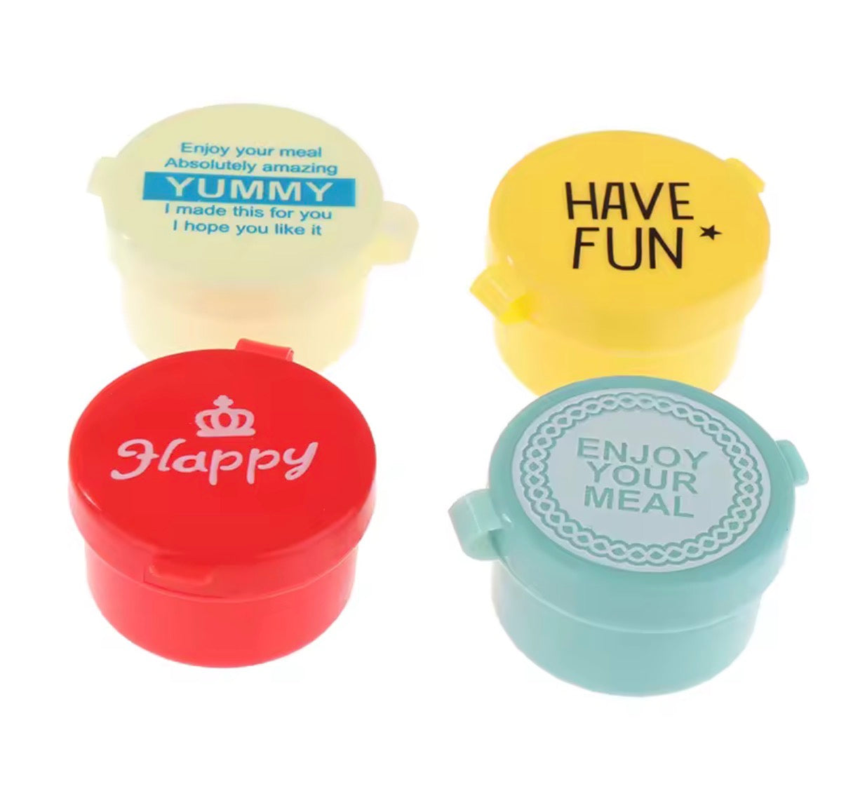 تأتي هذه المجموعة المكونة من 4 زجاجات صغيرة للصلصة بألوان كرتونية جذابة ومتنوعة. مثالية لتعبئة الصلصات أو التوابل في وجبة غداء طفلك أو لإضافة لمسة مرحة إلى علب الطعام. حافظي على تنظيم طعامك ونظافته مع هذه الحاويات العملية للتوابل.