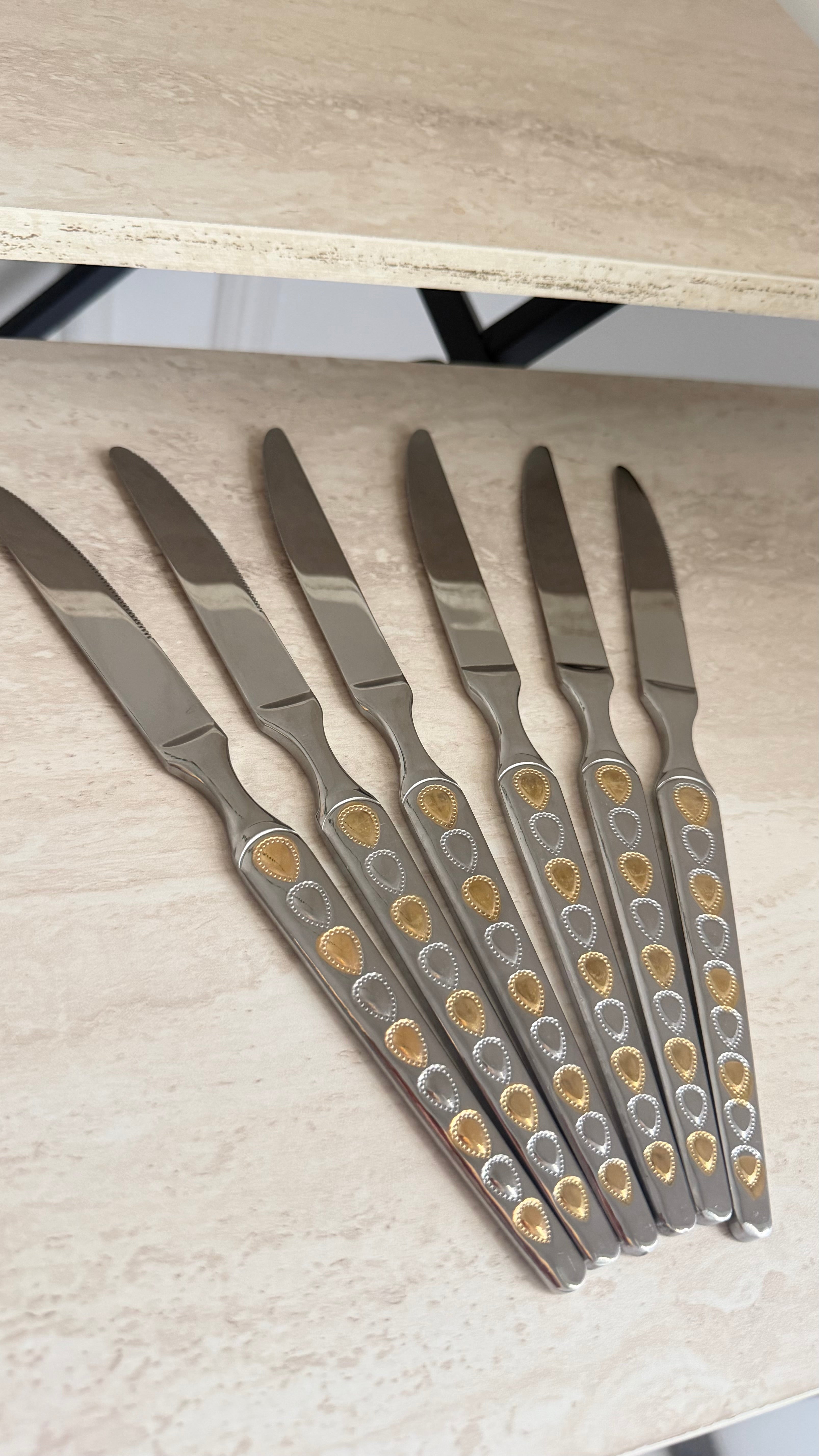 قائمة المنتج 6 قطع من السكاكين الفضية والذهبية No reviews 2.200 BDشامل ضريبة القيمة المضافة المادة: الفولاذ المقاوم للصدأ عبوة من 6 قطع اقرأ المزيد اقرأ المزيد كمية أضف إلى السلة هذا المنتج عملية شراء متكررة أو مؤجلة. بمواصلتي، أوافق على سياسة الإلغاء سياسة الإلغاء وأُصرّح لك بخصم المبلغ من طريقة الدفع الخاصة بي بالأسعار والتكرار والتواريخ المذكورة في هذه الصفحة حتى يتم تنفيذ طلبي أو إلغاؤه، إن أمكن. تم الشحن اليوم؟ الطلب خلال: Mar 03, 2026 10:00:00 +0300 شارك مع أصدقائك يشارك واتساب ديل X ثبتها ارسل بريد إلكتروني Customer Reviews Be the first to write a review Write a review 0% (0) 0% (0) 0% (0) 0% (0) 0% (0) وصف المادة: الفولاذ المقاوم للصدأ عبوة من 6 قطع