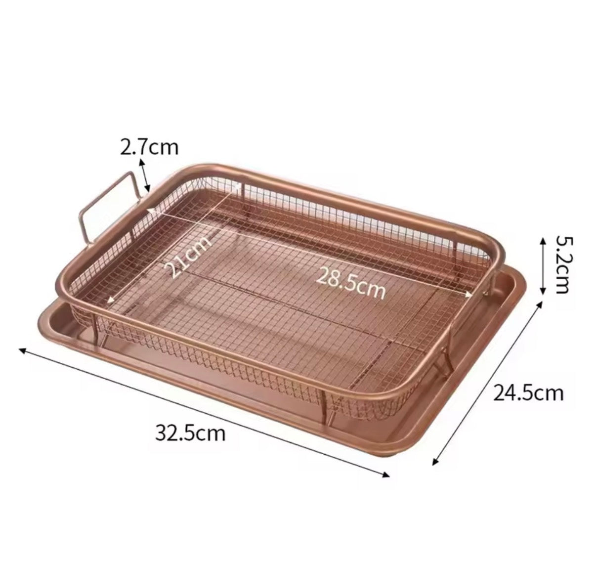 اقلي واخبزي أشهى الوجبات بكل سهولة مع مقلاة الزيت النحاسية. مصنوعة من الفولاذ المقاوم للصدأ، هذه الصينية غير اللاصقة تُستخدم أيضًا كشبكة شواء ومصفاة، مما يجعلها إضافة متعددة الاستخدامات لمطبخك. يضمن طلاءها النحاسي توزيعًا متساويًا للحرارة لأطباق مقرمشة تمامًا في كل مرة.