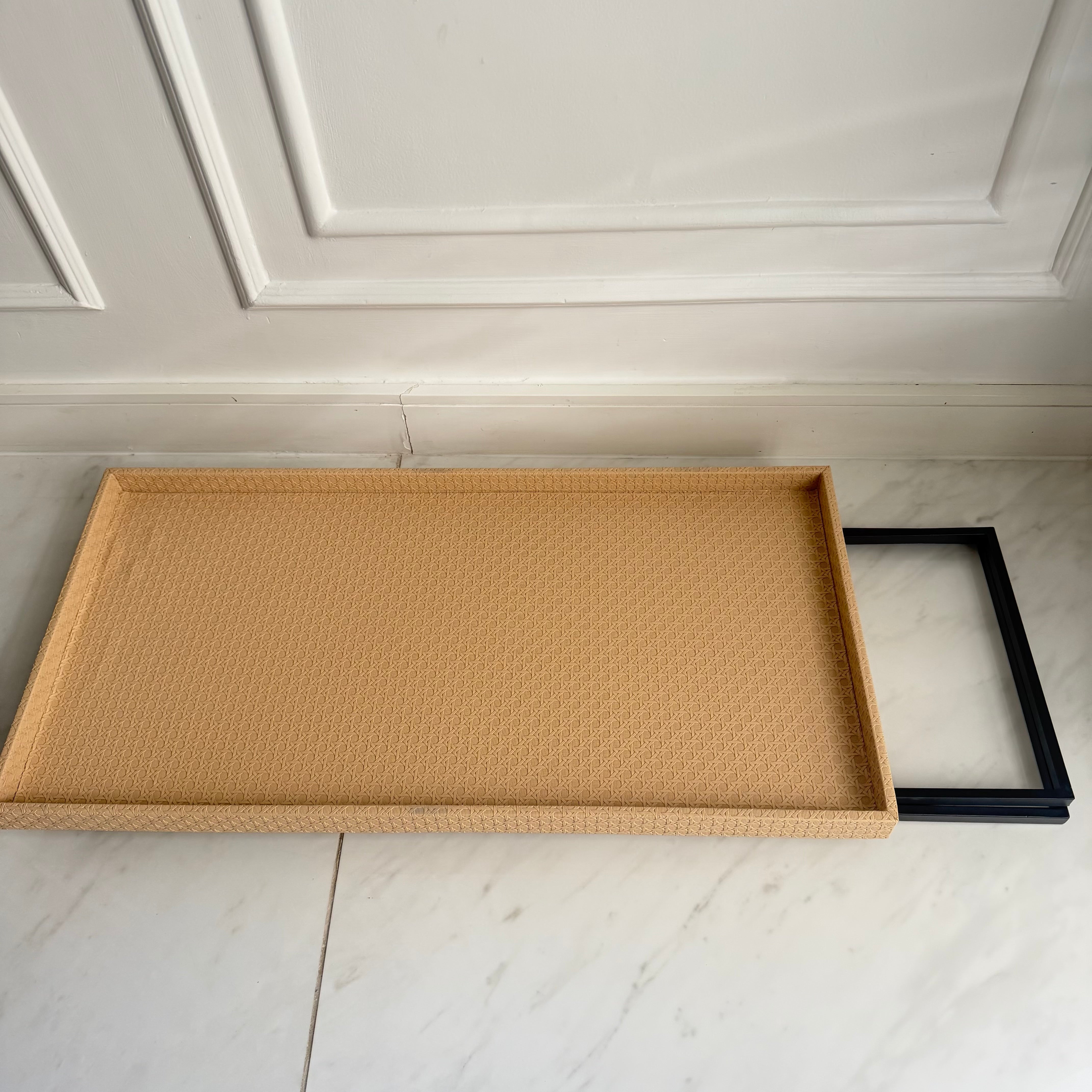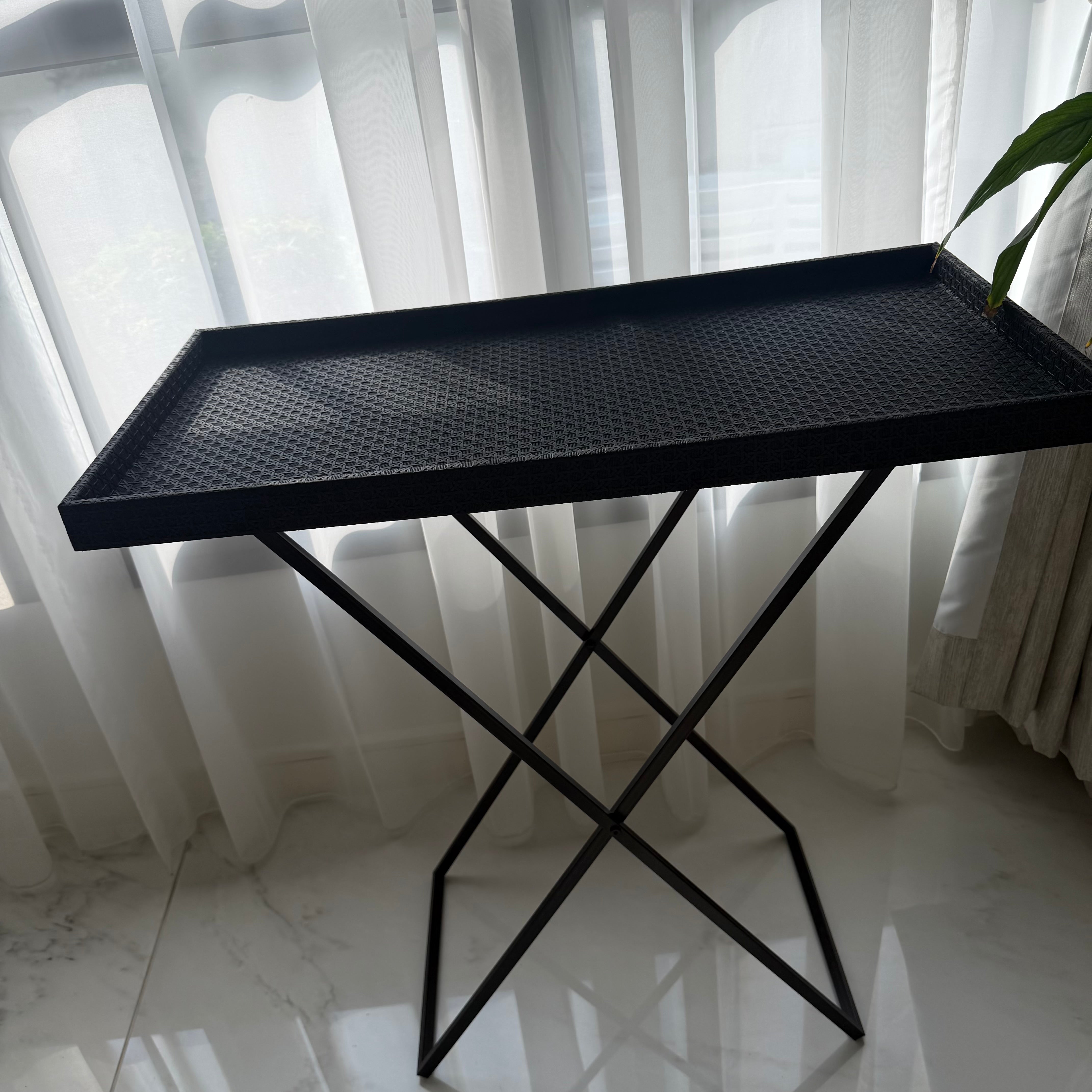 This folded leather display table combines practicality and elegance, making it ideal for gatherings and receptions. Its high quality material ensures durability and its foldable design allows for convenient storage, saving space when not in use.