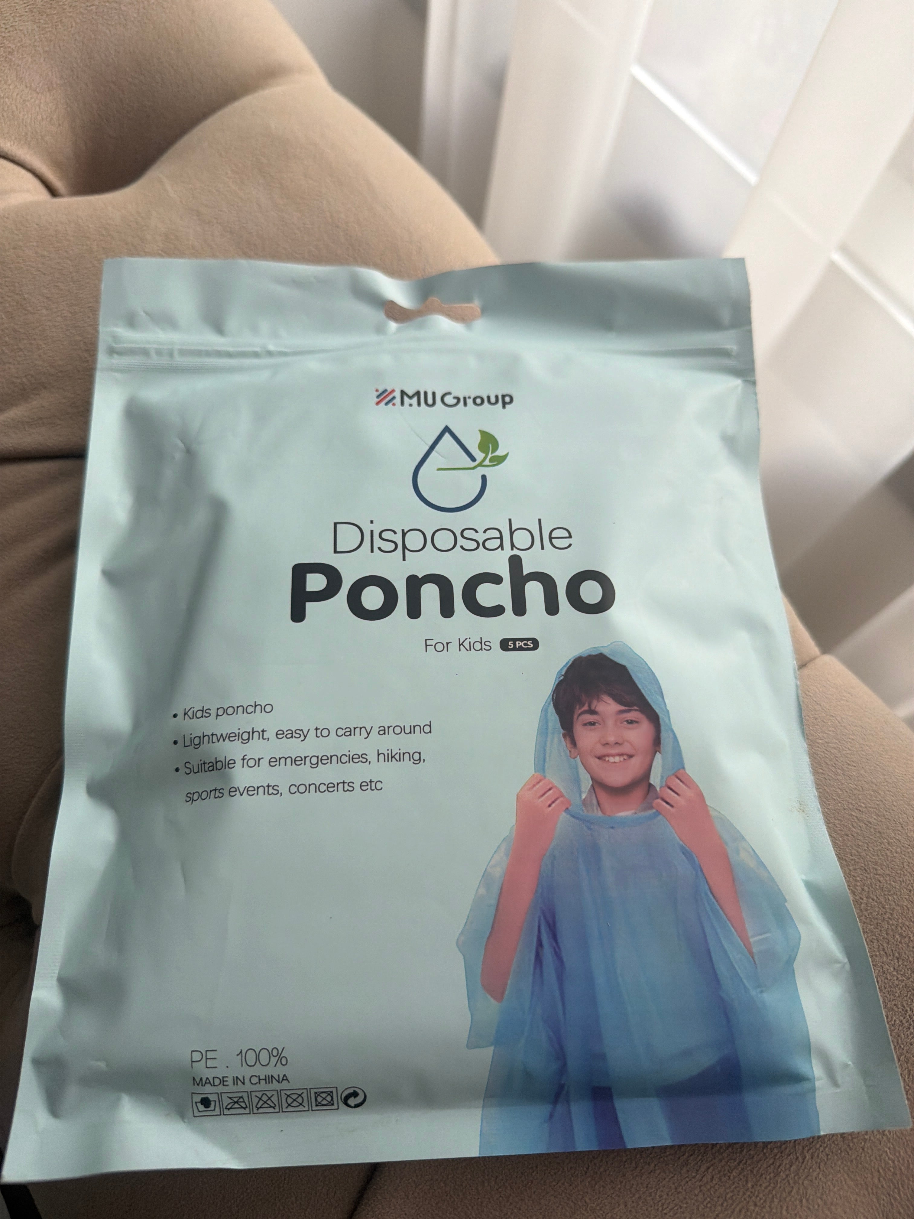 This pack of 5 lightweight and disposable ponchos is perfect for emergency situations, hiking, sporting events, and traveling in rainy areas. Each poncho measures 108*90 cm, making it suitable for adults. Stay prepared and protected from the rain with these easy-to-carry ponchos.