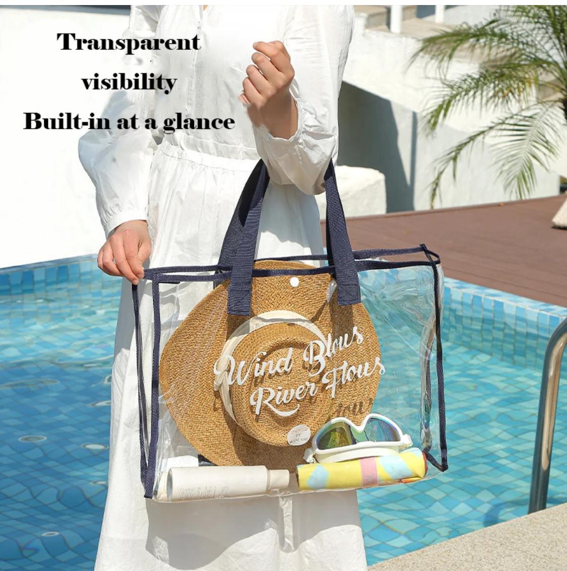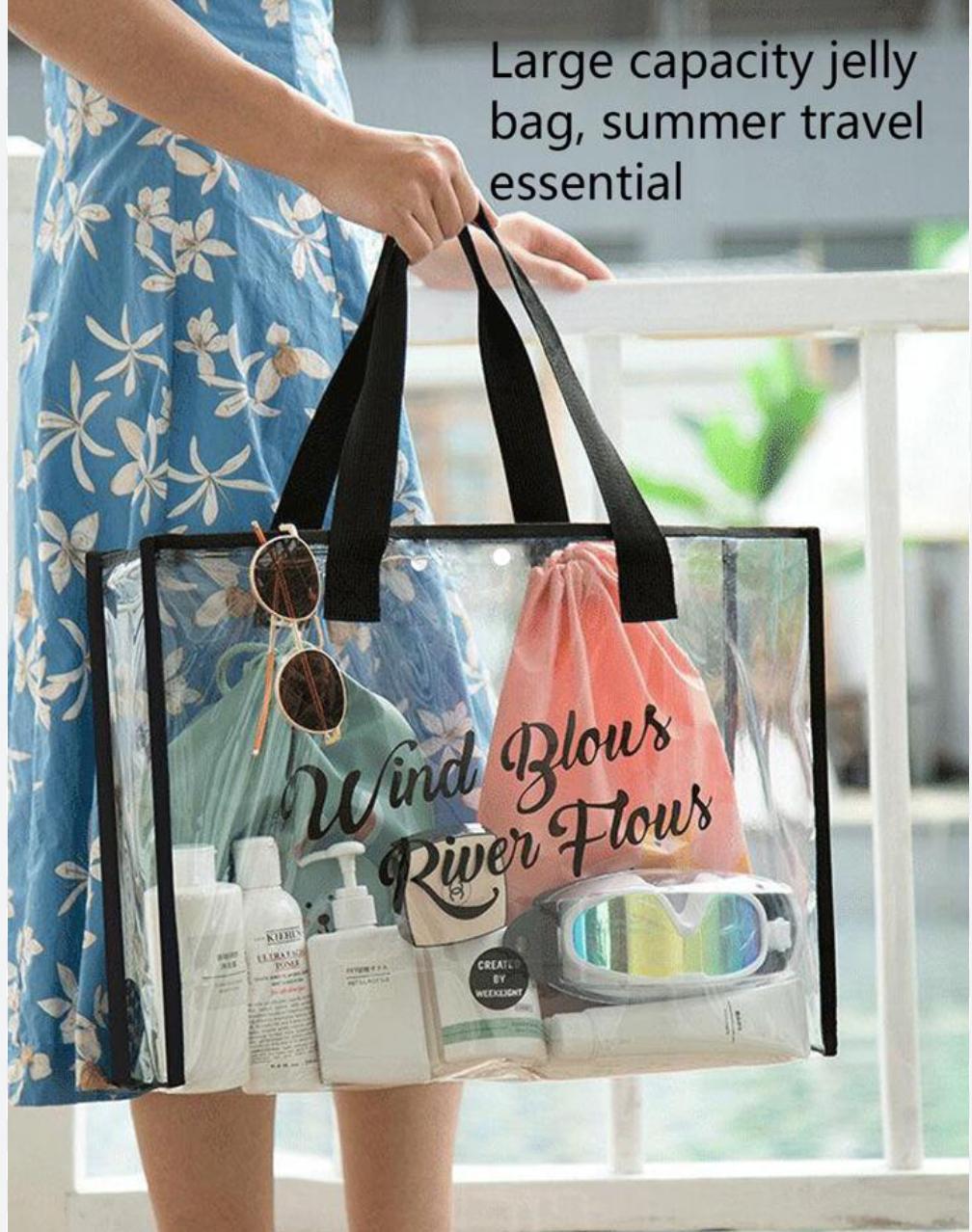نقدم لكم حقيبة الصيف الشفافة - مثالية لجميع مغامراتكم الصيفية. هذه الحقيبة الواسعة متعددة الاستخدامات مصممة لتجمع بين العملية والأناقة. بفضل خامتها الشفافة، يمكنكِ بسهولة العثور على ما تحتاجينه وإظهار أغراضكِ الأساسية. لا تفوتي فرصة اقتناء هذه الإكسسوارات الأساسية لهذا الموسم.