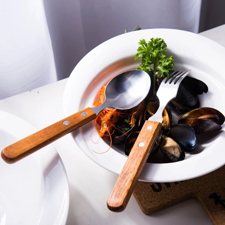 تتميز هذه المجموعة الخشبية المكونة من ثلاث قطع بمزيج من الفولاذ المقاوم للصدأ المتين والمقابض الخشبية، مما يضفي لمسةً من الأناقة والعملية على مائدتك. استمتع بمزايا المجموعة الكاملة من الشوكة والملعقة والسكين بلمسة عصرية وصديقة للبيئة.