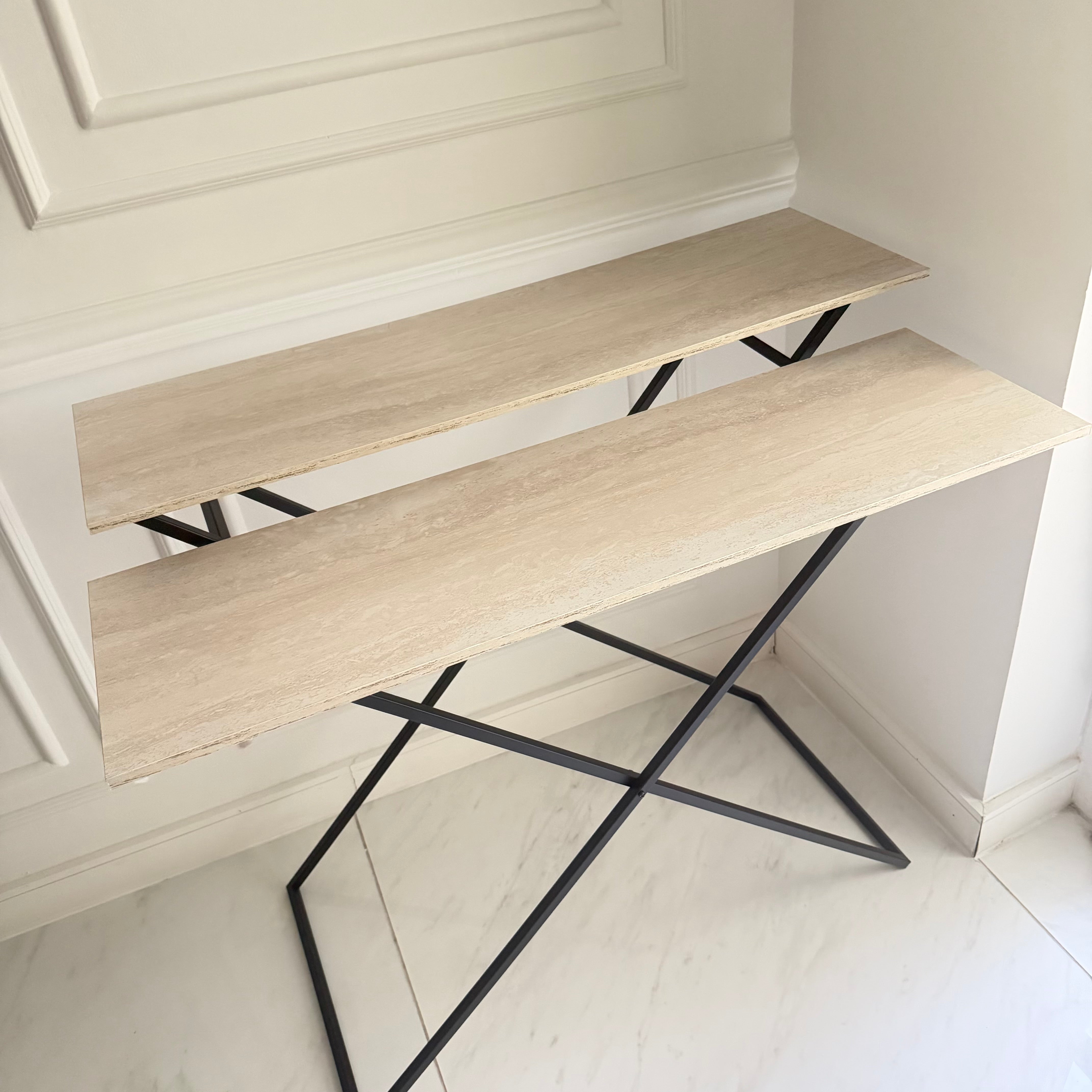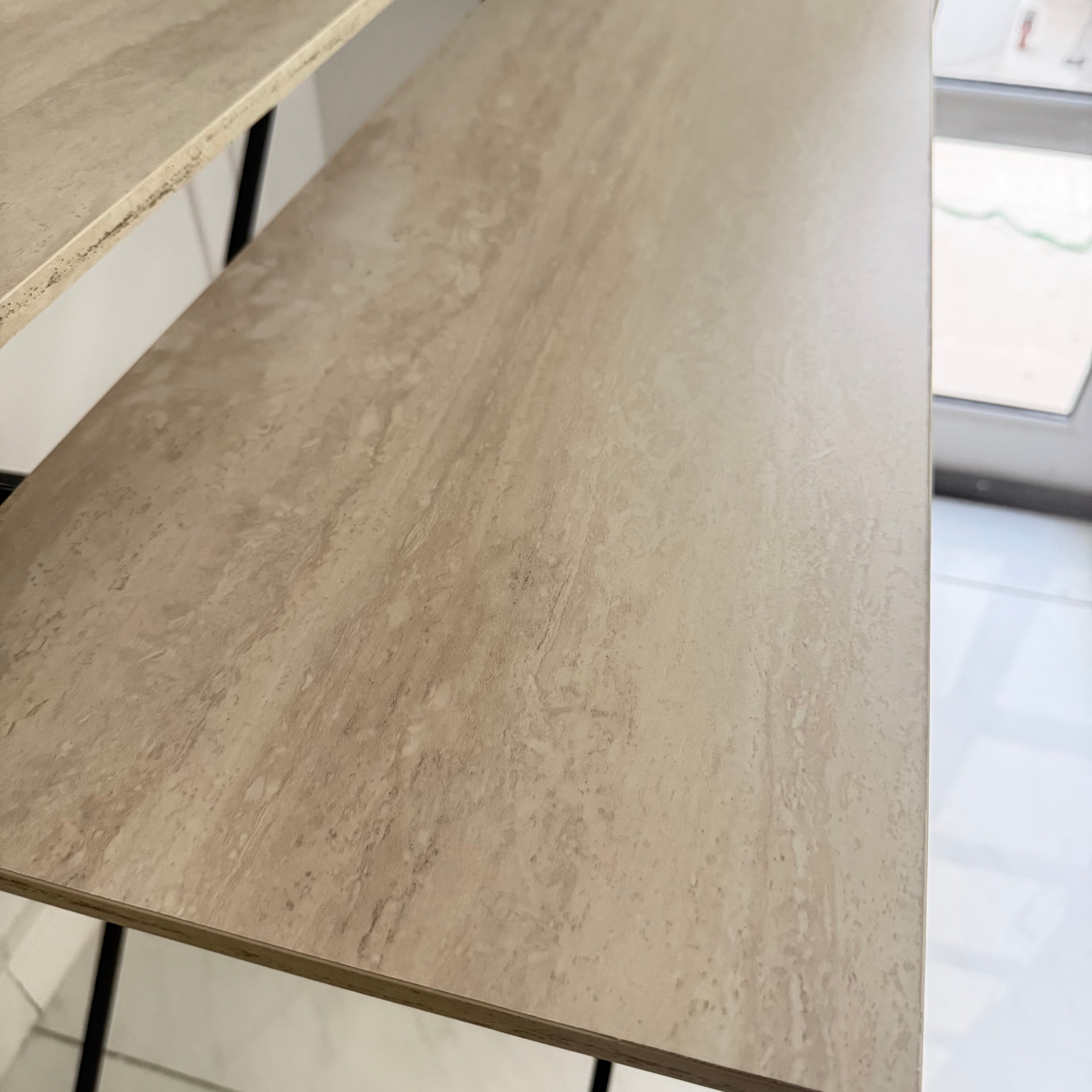 هذه الطاولة الخشبية المزدوجة بلونها الأبيض تُعدّ طاولة استقبال أنيقة وعملية للتجمعات. حاملها المعدني المتين يضمن المتانة والثبات. بفضل قاعدتها المريحة المكونة من طبقتين، تُغنيك عن شراء طاولتين. تتميز الطاولة بمساحة واسعة تبلغ ١٠٠ × ٣٠ سم، وارتفاعيها ٩٠ سم و٨٣ سم. حسّن مساحتك مع هذا الحل متعدد الاستخدامات والموفر للمساحة.