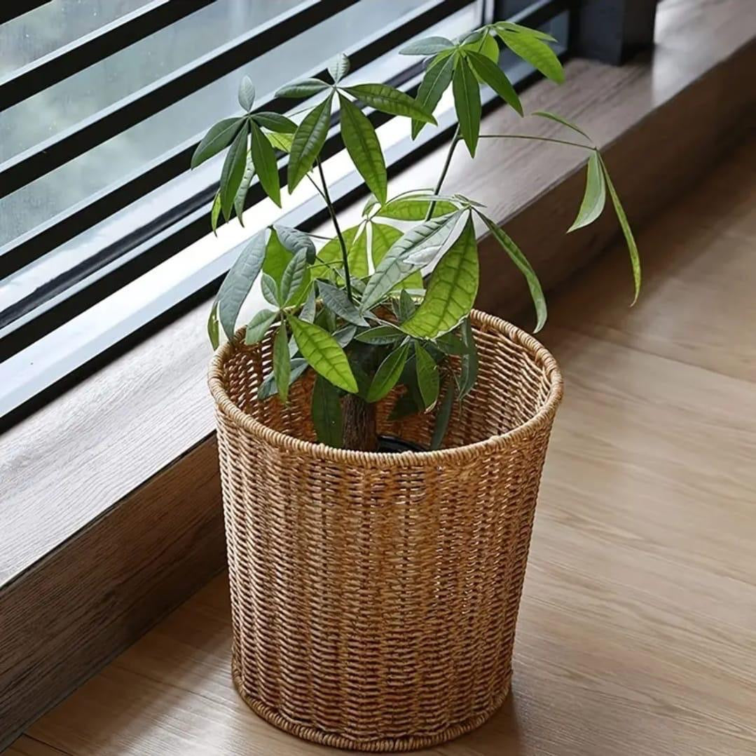 سلة المهملات المصنوعة من الروطان المنسوج