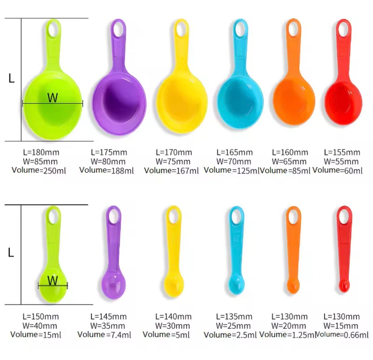 12Pcs Colorful Plastic Measuring Spoon