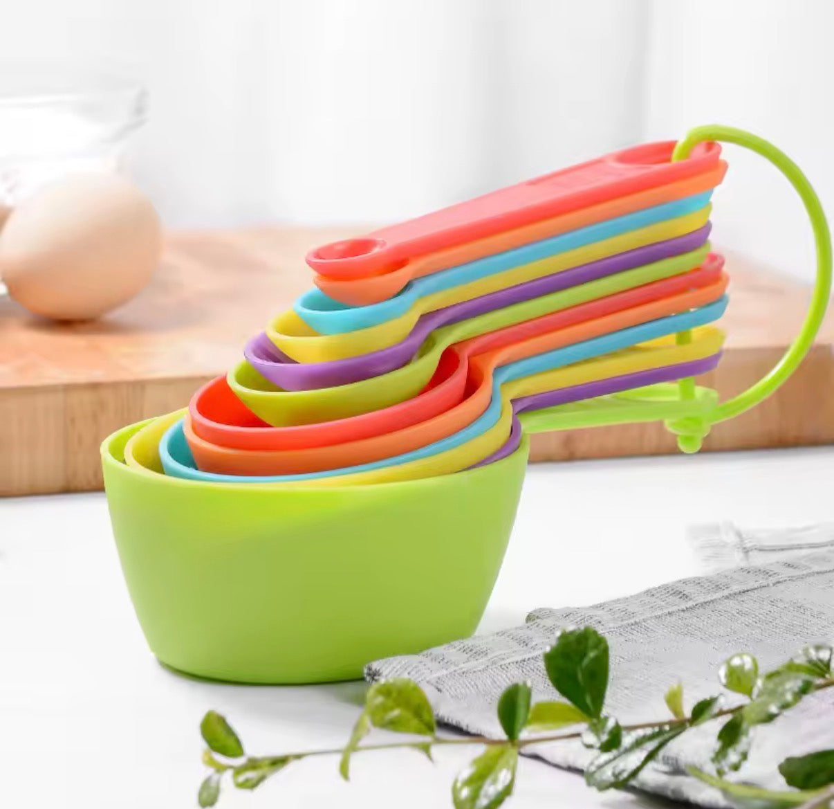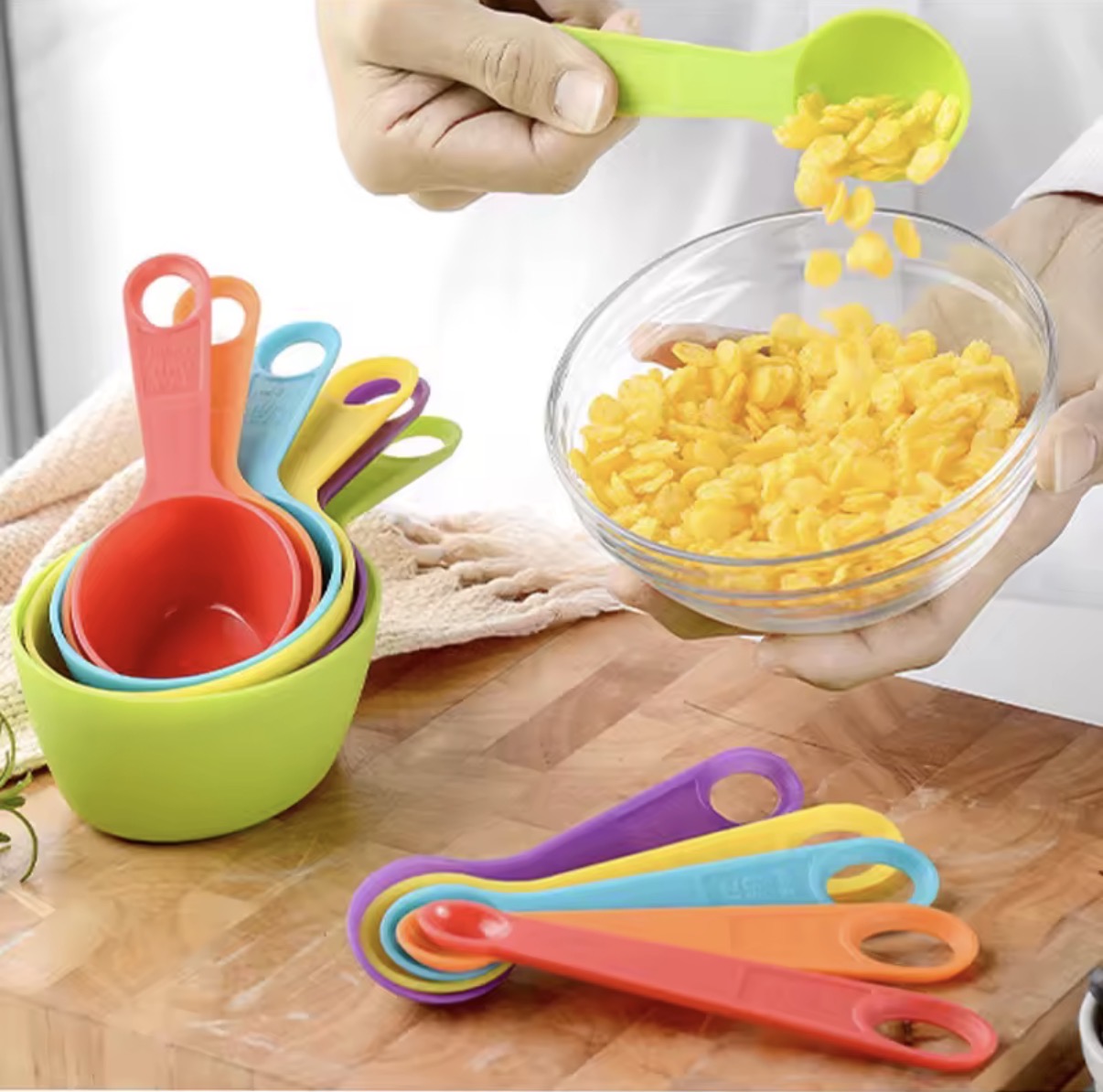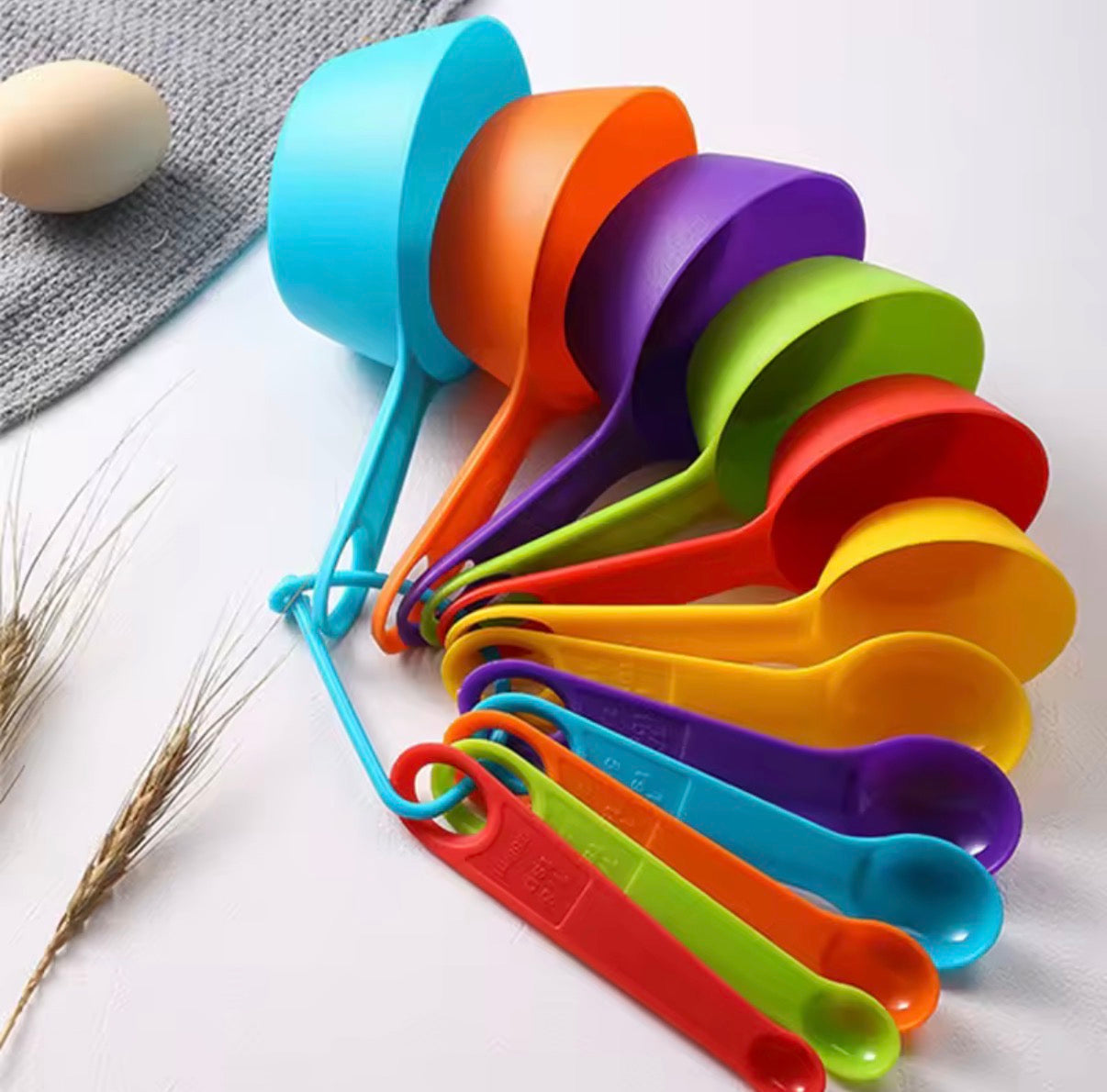 Enhance your cooking experience with this 12-piece set of colorful plastic measuring spoons and cups. Each tool features a convenient scale for accurate measurements. Made for multi-purpose use in the kitchen, this set is a must-have for any cooking enthusiast.