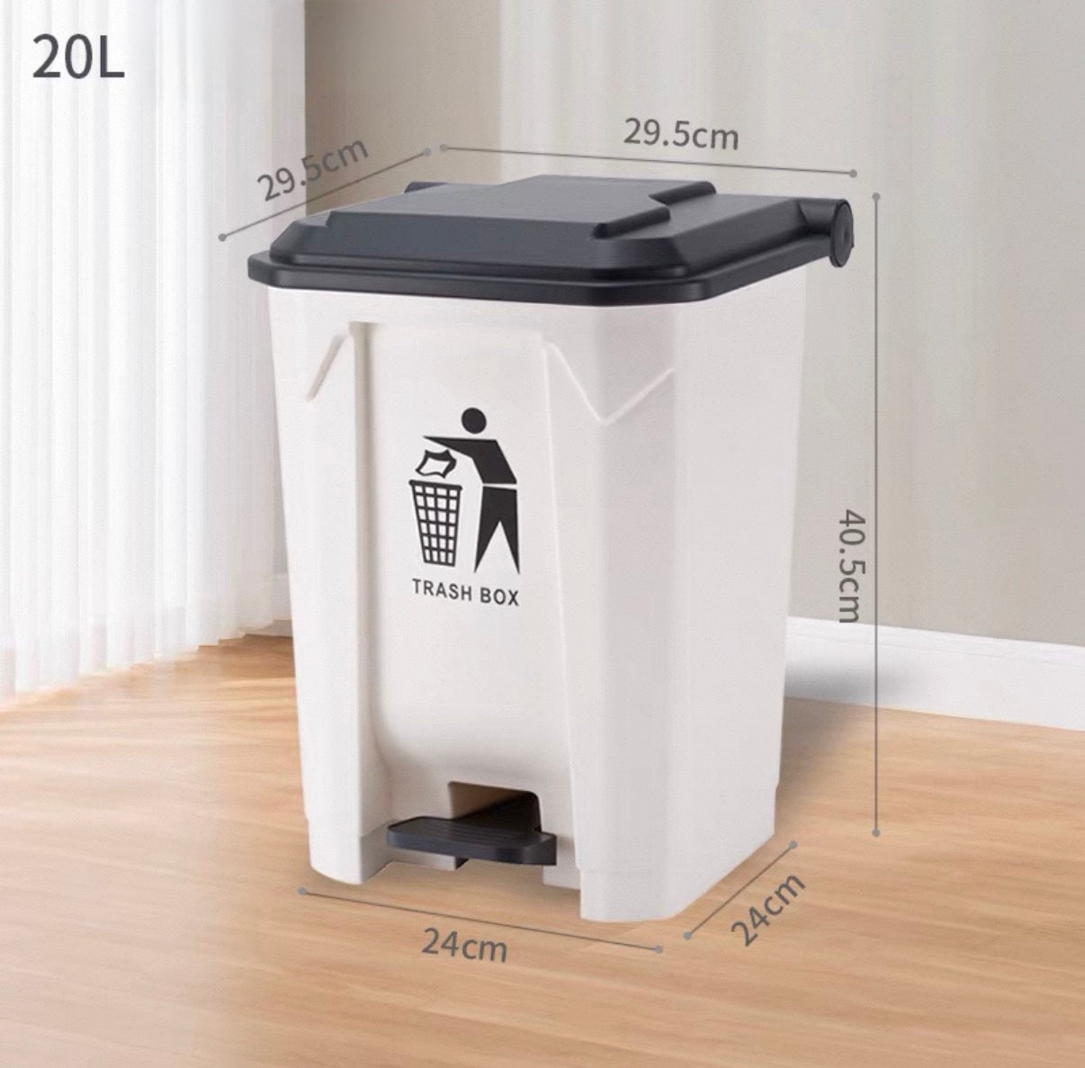 Efficiently dispose of waste with our 20L foot operated trash can. Featuring a sleek design and durable plastic material, it's both stylish and practical. The included bucket allows for easy cleaning and disposal. Keep your space clean and organized with ease.