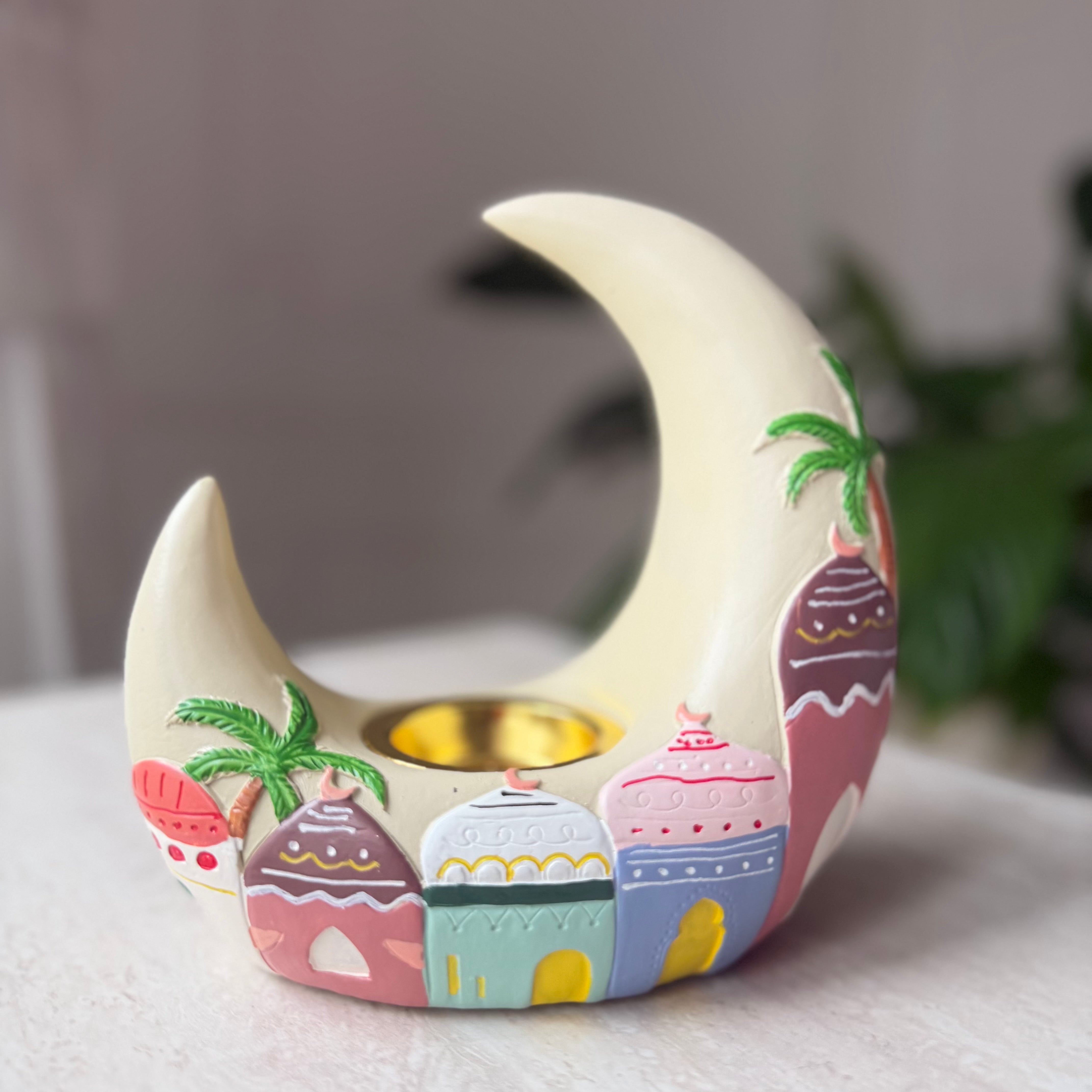 Experience the beauty and serenity of the holy month of Ramadan with our Essence Moon Resin. Crafted with a ramadan theme, this bowl glass measures 18*15 cm, perfect for displaying your favorite treats. Made with high-quality resin, it is durable and adds a touch of elegance to any room.