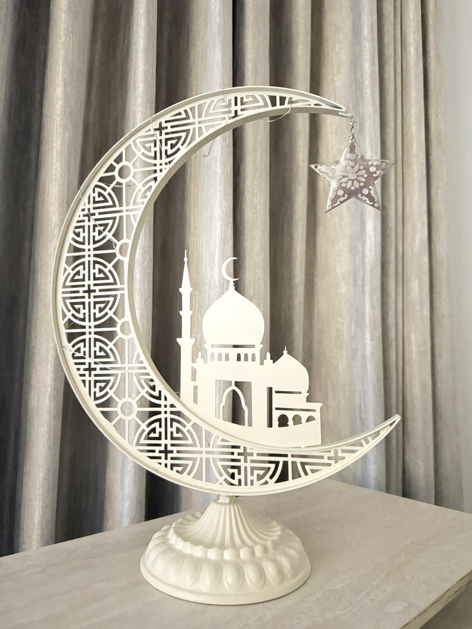 Add a touch of elegance to any room with our Larg offwhite moon metal light stand. This stand is perfect for adding a decorative accent to your space while also providing gentle, ambient lighting. The unique moon design and offwhite color make it a versatile piece that can complement any decor style. Expertly crafted with durable metal materials, this stand is built to last.