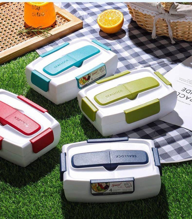 This leakproof colourful lunch box comes with cutlery included, perfect for students, kids, and adults alike. Say goodbye to spills and hello to convenience with this lunch box. Use it to keep your food fresh and secure while on-the-go.