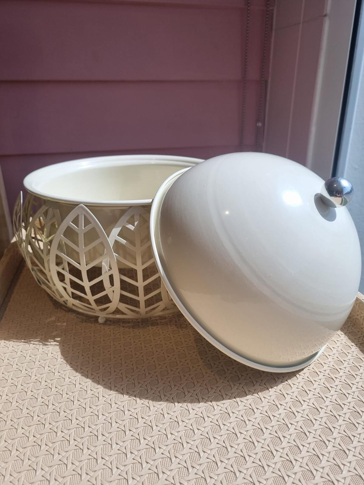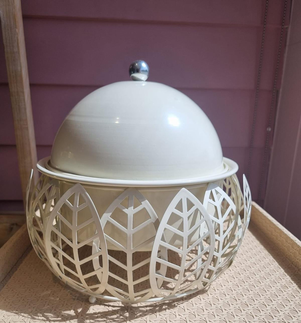 This metal offwhite pot is perfect for reception areas. With removable interior pieces, it's easy to clean and maintain. Measuring 28 cm in height and 25 cm in width, it adds a sleek touch to any space. Keep your reception area stylish and inviting with this versatile pot.