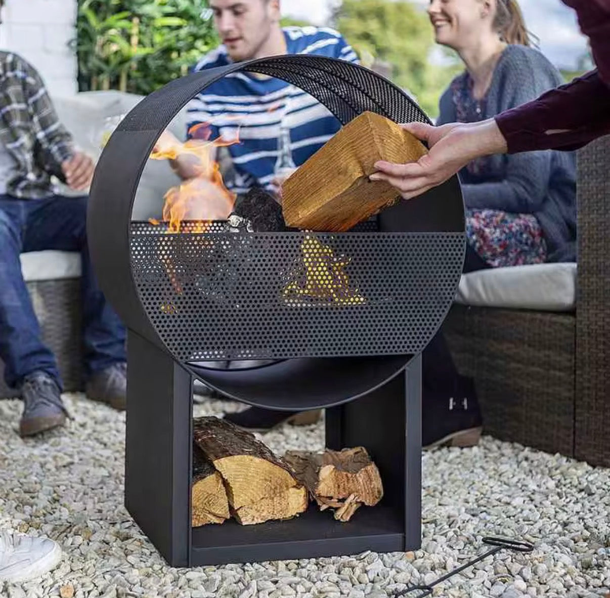 Elevate your outdoor gatherings with our high-quality, modern fire pit. Crafted from durable metal, it features a built-in storage area for wood, making it perfect for picnics, garden parties, and chilly nights. Enjoy the warmth and ambiance while adding a touch of style to your space.