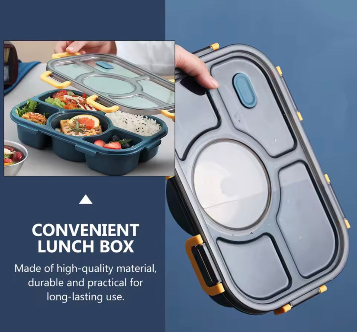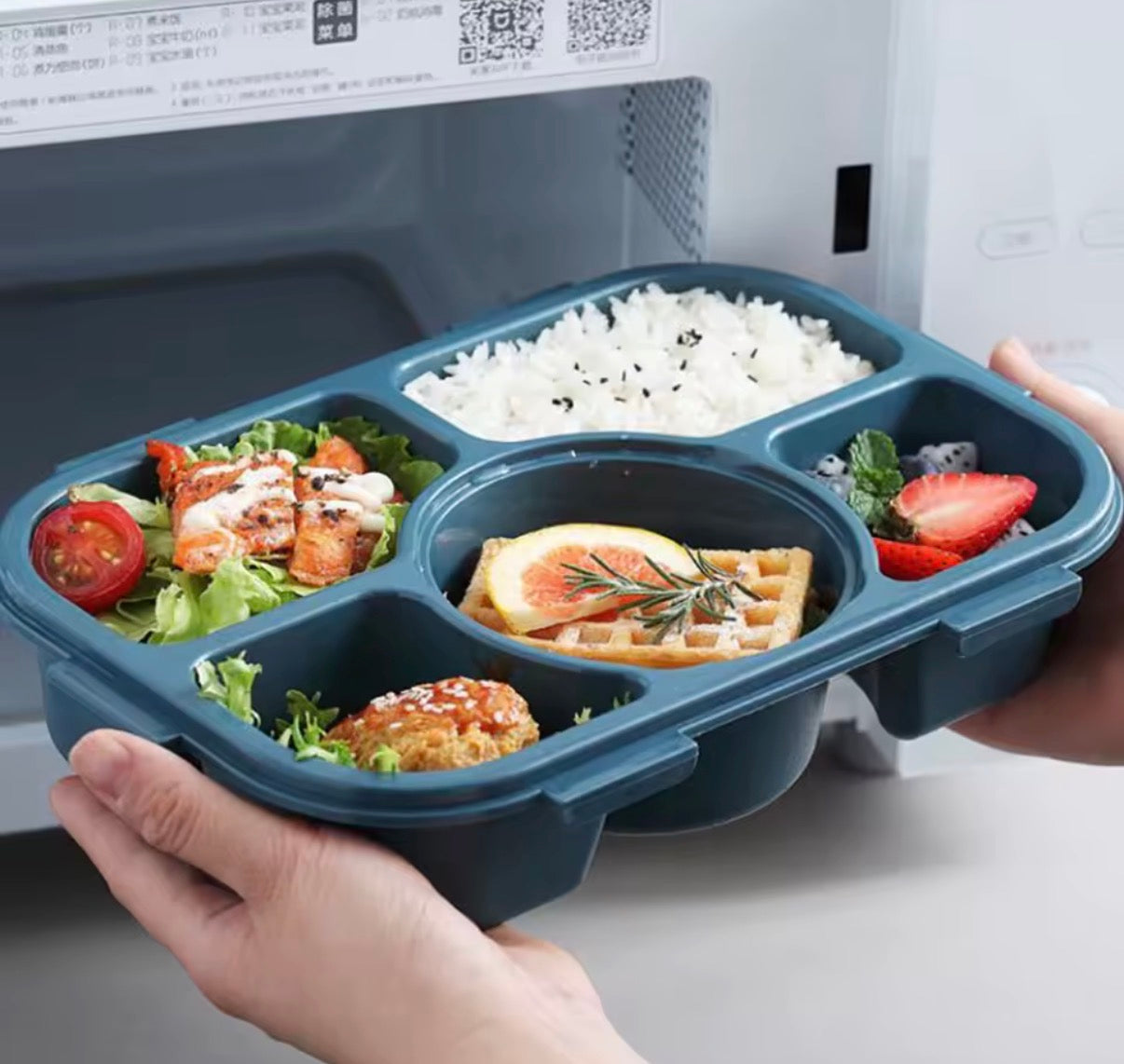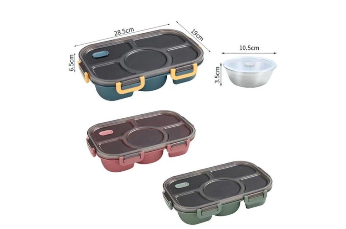 This Plastic Five-Compartment Bento Lunch Box features five separate compartments and is made of durable plastic. The box measures 28.5*19 cm, making it easy to transport and store. Perfect for packing balanced and organized lunches, keeping food fresh and reducing waste.