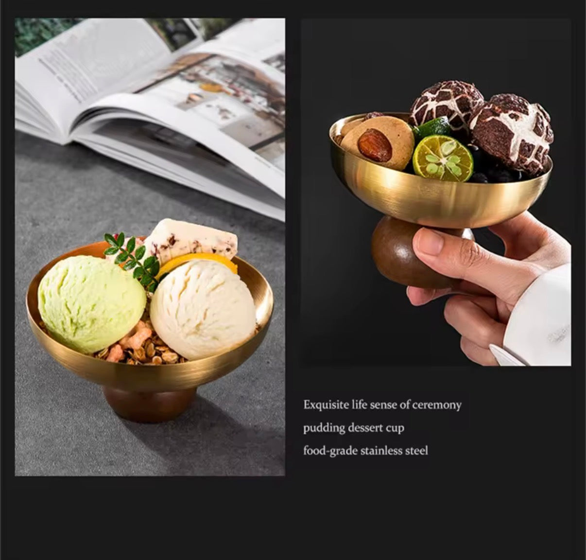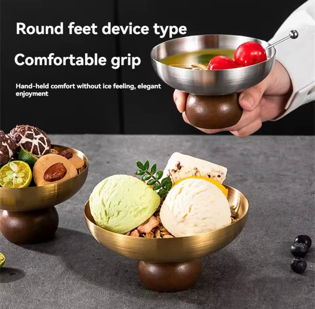 Stainless steel short footed dessert bowl
